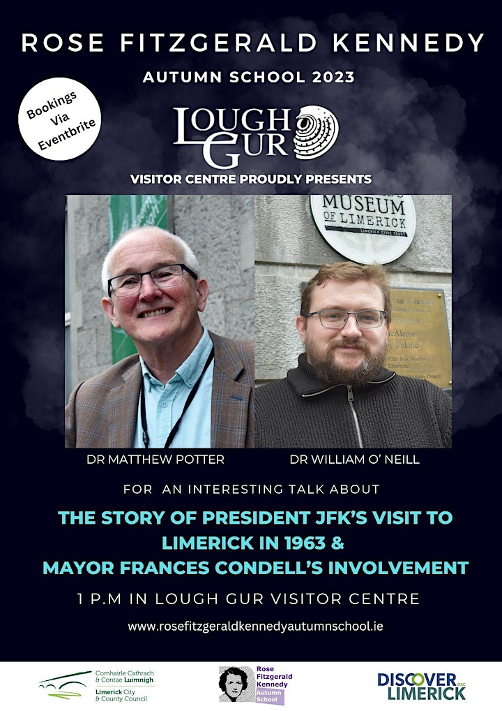 The Rose Fitzgerald Kennedy Autumn School will honour Rose the mother of John F Kennedy, President of the United States of America and her three grandparents who left Bruff in 1850 after the famine. It looks to explore the area they left, its culture and environment, diaspora and place in the world. It is hoped to have a lively debate and thoughtful exploration of Ireland – the diaspora – in culture, music, politics and sport. It is also a celebration of rural Ireland, her towns and the wonderful environment in which we live. The School promises engaging and inspiring events through a wide-ranging programme over three days about Ireland and her people around the world, with their unique and innate culture.