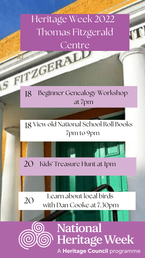 We are delighted to be bringing some events to the area this year for National Heritage Week – an initiative by the Heritage Council, it celebrates all things heritage.